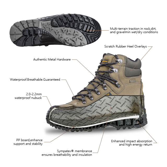 ① Anti banyu lan Breathable ②All-round Protection ③Shock Absorption lan Stabilitas