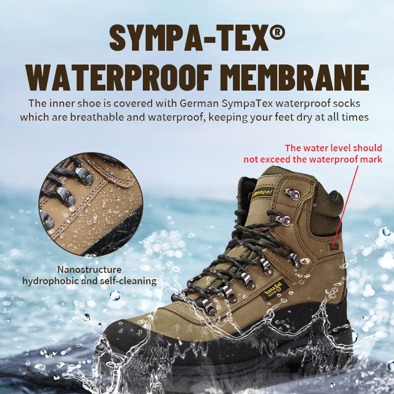 Sepatu njero ditutupi karo kaos kaki anti banyu Sympatex Jerman sing ambegan lan anti banyu, supaya sikilmu tetep garing.