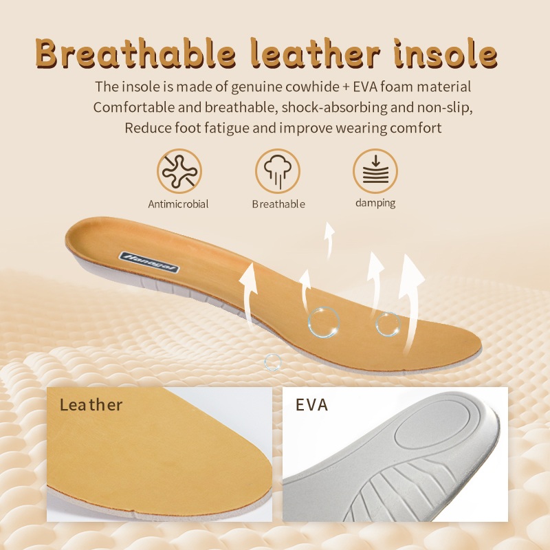 Kulit sapi asli + insole busa EVA—bisa ambegan, nyerep kejut, lan ora licin. Njaga kaki kroso seger mil sawise mil.