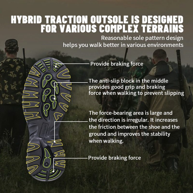 ① Anti banyu lan Breathable ②Lukisan Kamuflase ③Awet lan Slip Tahan ④Bantalan lan Nyerep Kejut