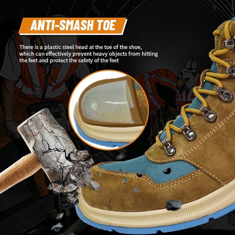 Ana sirah baja plastik ing jempol sepatu, sing bisa nyegah obyek abot supaya ora kena sikil lan nglindhungi safety sikil.