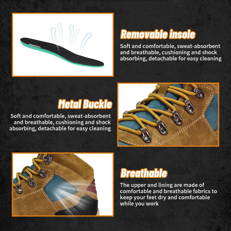 Sisih ndhuwur lan lapisan digawe saka kain sing nyaman lan ambegan supaya sikilmu garing lan nyaman nalika sampeyan kerja.