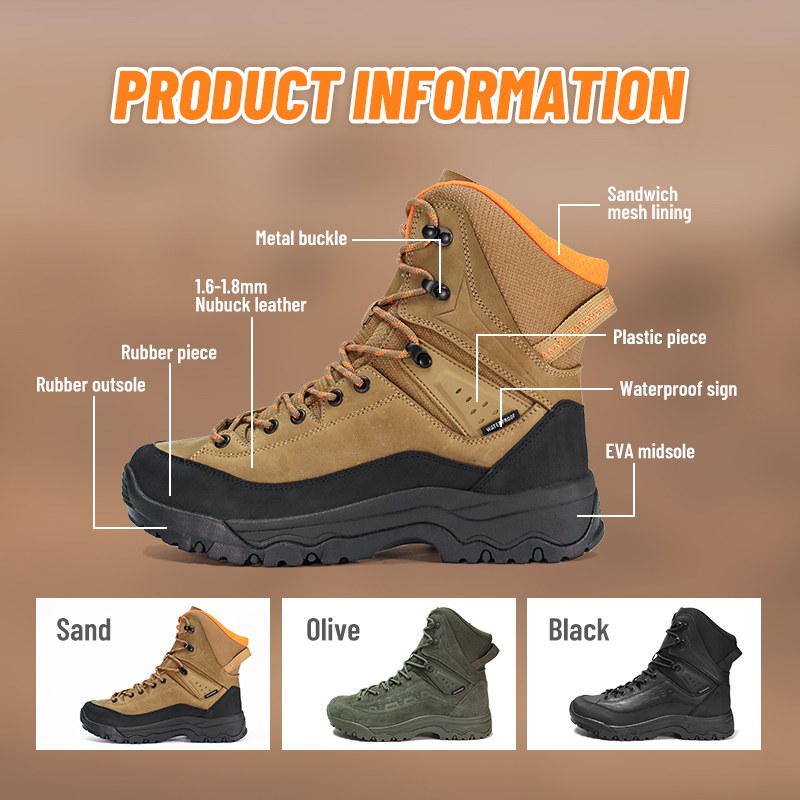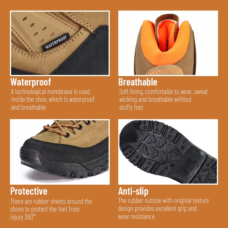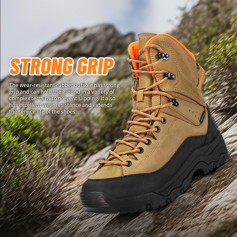 Dalan sing lunyu ora mandheg ing kene. Outsole sing kaku ngunci ing watu teles lan lemah sing kenthel, dene konstruksi anti banyu tetep kaki garing liwat kali lan udan. Strong Grip Anti Slip Waterproof Hiking Shoes-kapercayan ing saben langkah. Kirimake pitakon kanggo informasi luwih lengkap.