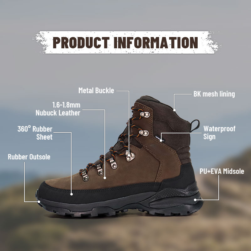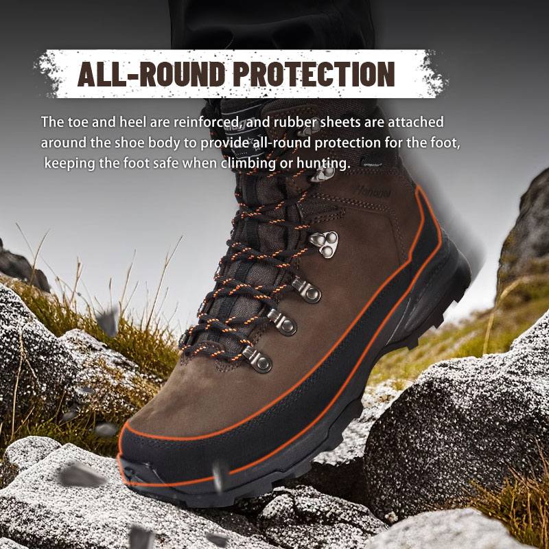 Jempol lan tumit dikuwatake, lan lembaran karet dipasang ing sakubenge awak sepatu kanggo nyedhiyakake proteksi kabeh kanggo sikil, supaya sikil tetep aman nalika menek utawa mburu.