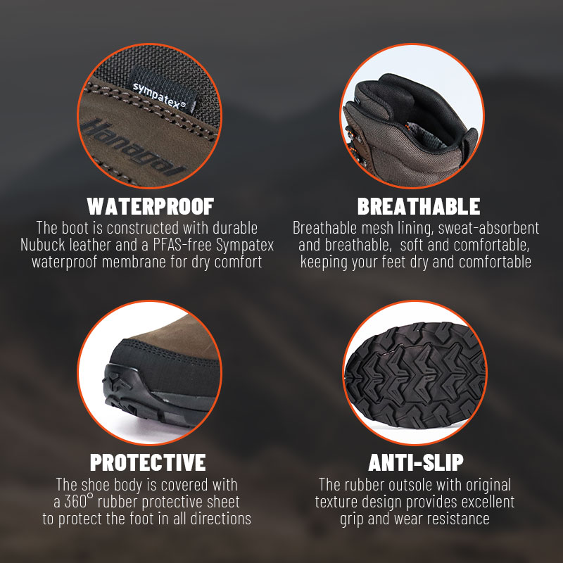 Waterproof sampeyan bisa dipercaya. Kekiatan sing dadi jarak. Dirancang nganggo teknologi membran Sympatex, Boots Hiking Tahan Air Sympatex iki njaga kelembapan nalika sikil bisa ambegan-supaya sampeyan tetep garing sajrone mil. Dibangun kanggo nangani terrain kasar kanthi nyaman lan daya tarik sing bisa dipercaya. Kirimake pitakon kanggo informasi luwih lengkap.
