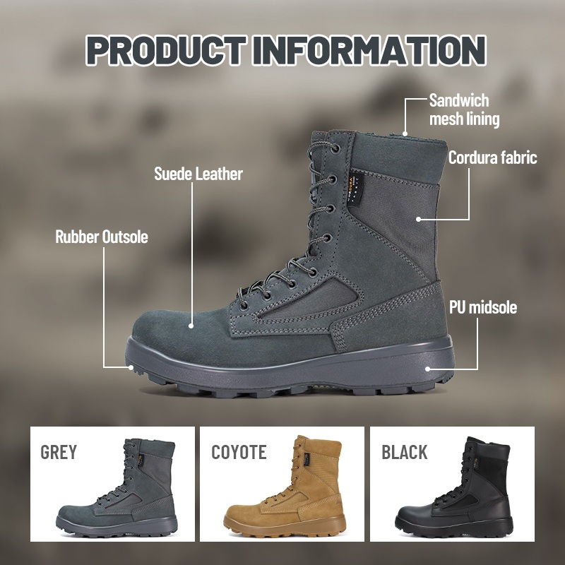 Angin ora bisa mlebu, wedhi ora bisa mlebu. Slipping dudu pilihan. Boots Taktis Gurun Anti-slip Anti-slip Windproof menehi proteksi sing dipercaya ing ngendi gurun nguji kabeh: konstruksi sing disegel tetep apik, lan outsole sing agresif nyekel wedhi sing longgar lan lemah sing berbatu. Kirimake pitakon kanggo informasi luwih lengkap.
